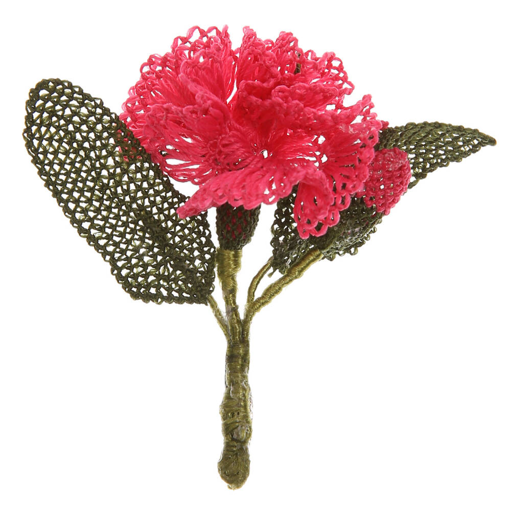 Karanfil Çiçekli Pembe Yaka İğnesi Elişi İğne Oyası takı aksesuar