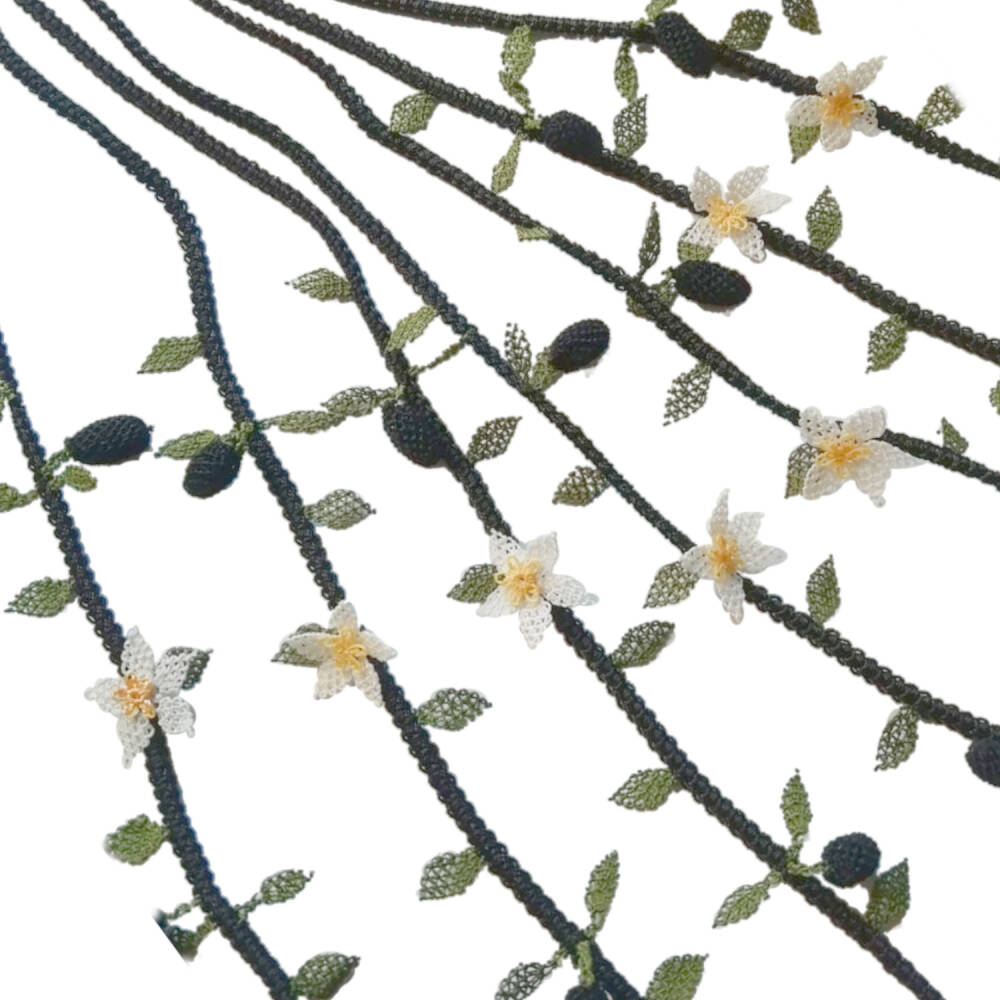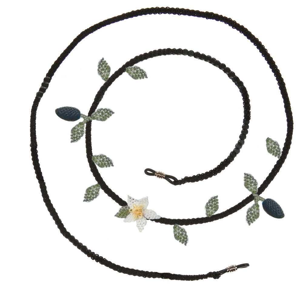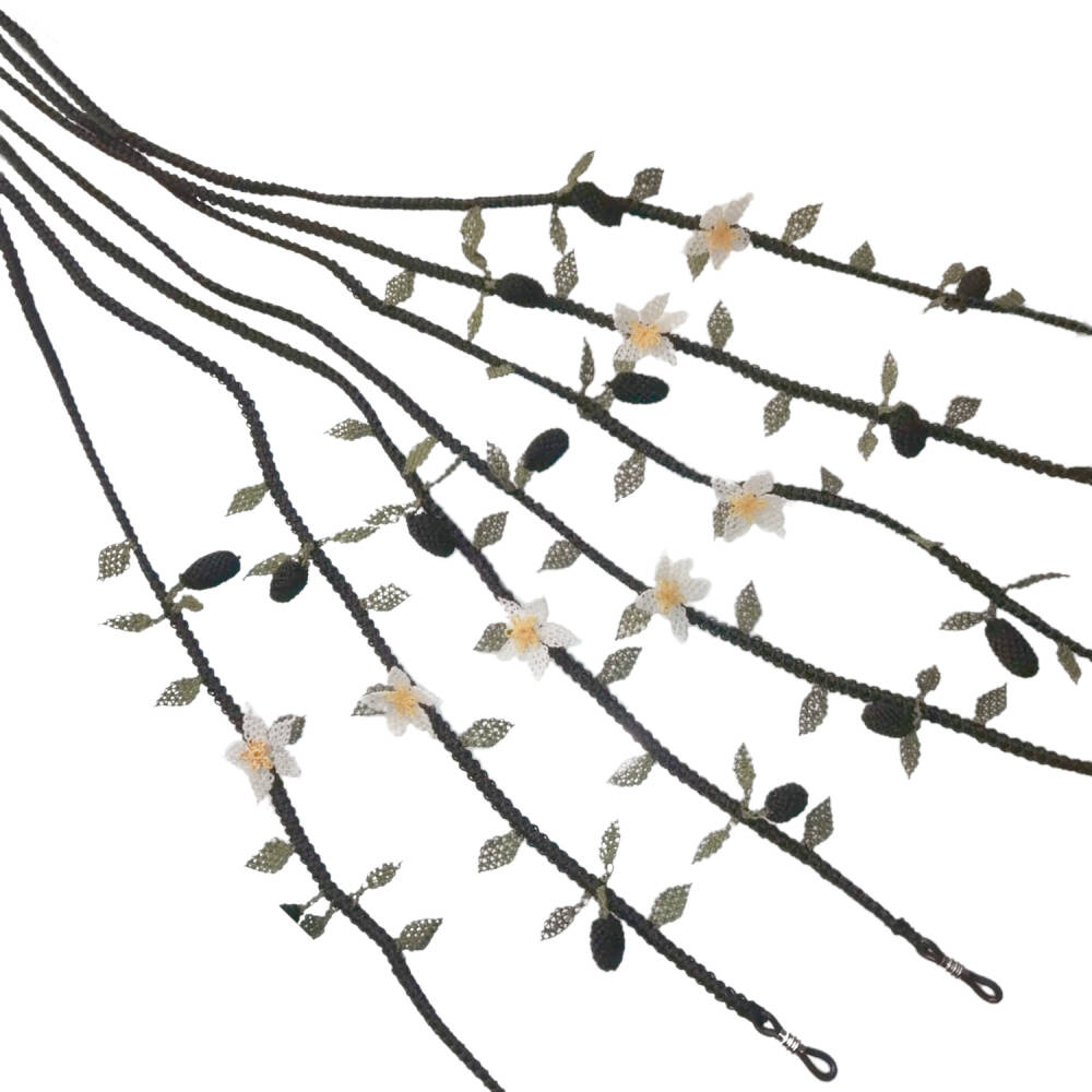 Zeytin Çiçekli Gözlük İpi Elişi İğne Oyası 85 Cm Beyaz-Siyah takı aksesuar