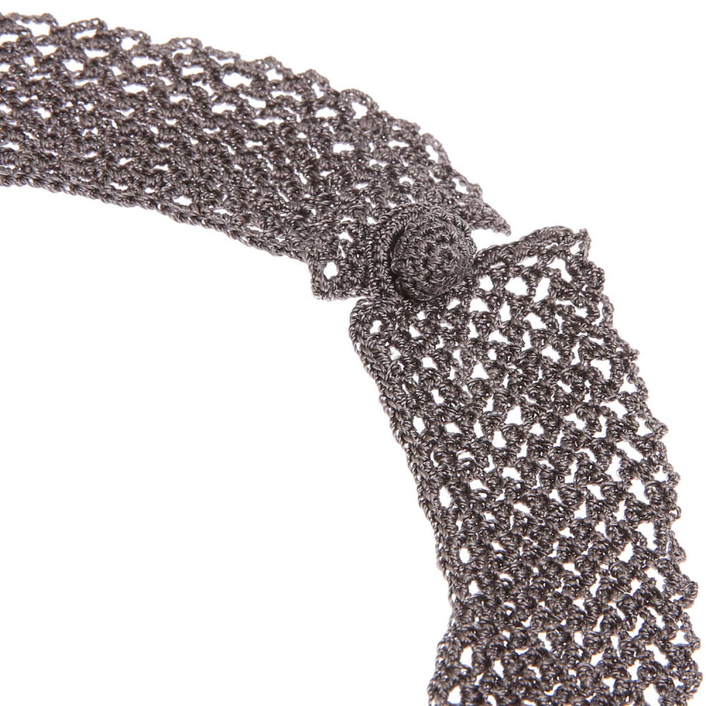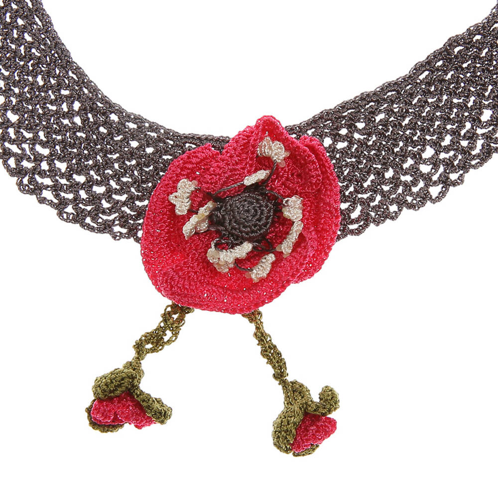Gelincik Çiçekli Tasma Kolye Elişi Tığ Oyası 35-40 Cm Fuşya-Füme takı aksesuar