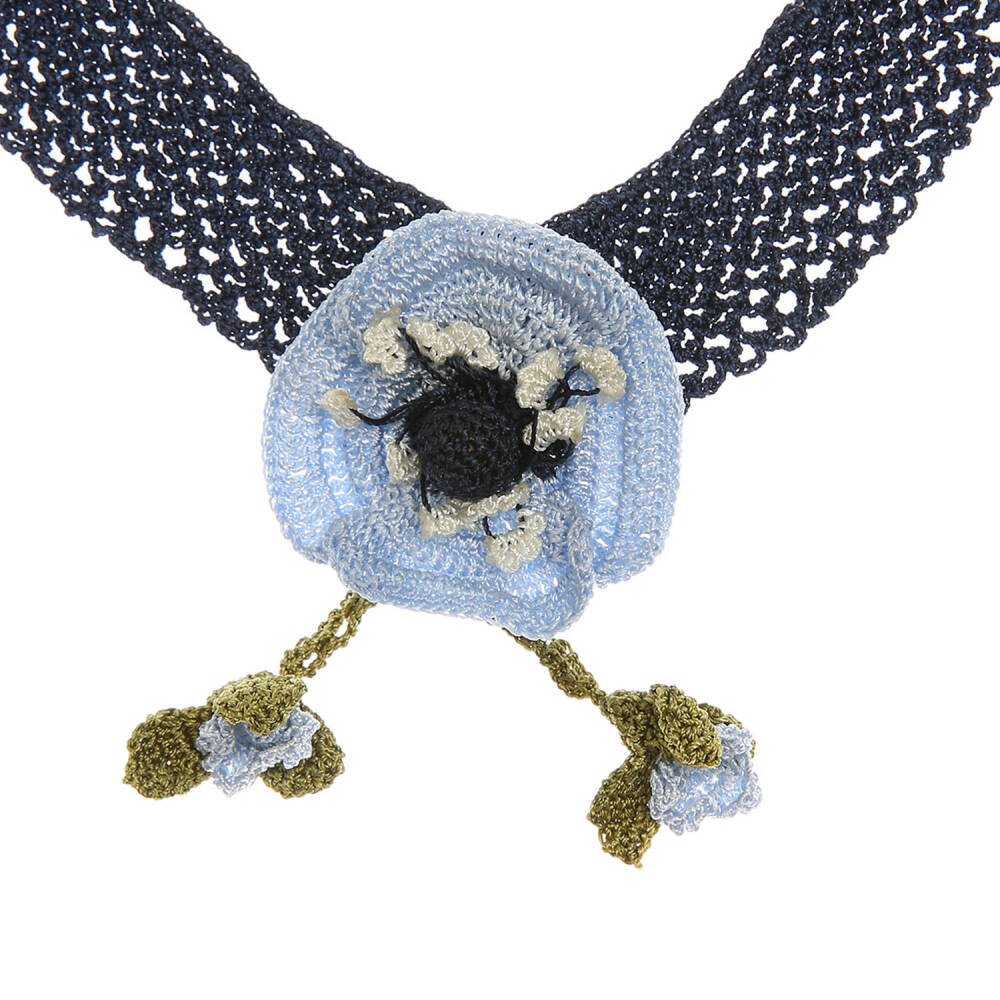 Gelincik Çiçekli Tasma Kolye Elişi Tığ Oyası 35-40 Cm Mavi -Lacivert takı aksesuar