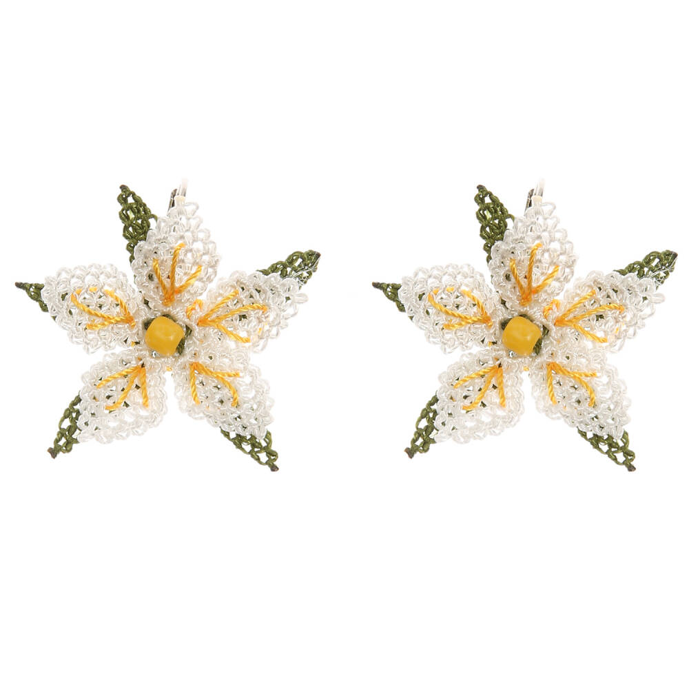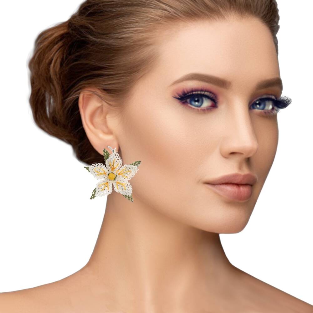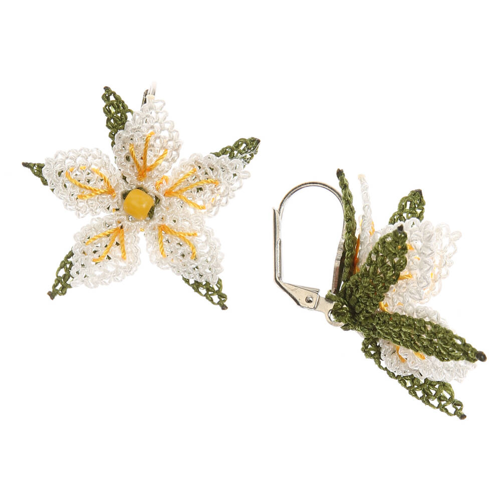 Mini Çiçek Küpe Elişi İğne Oyası Cm Beyaz Sarı takı aksesuar