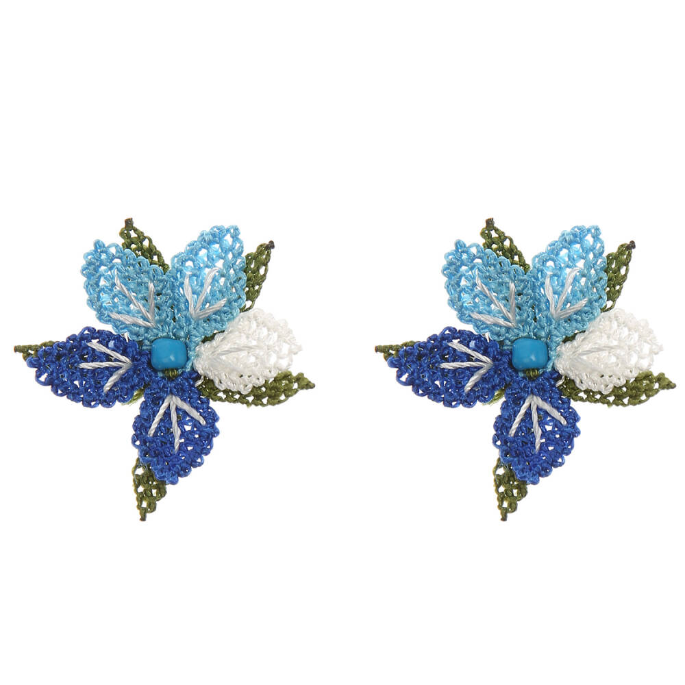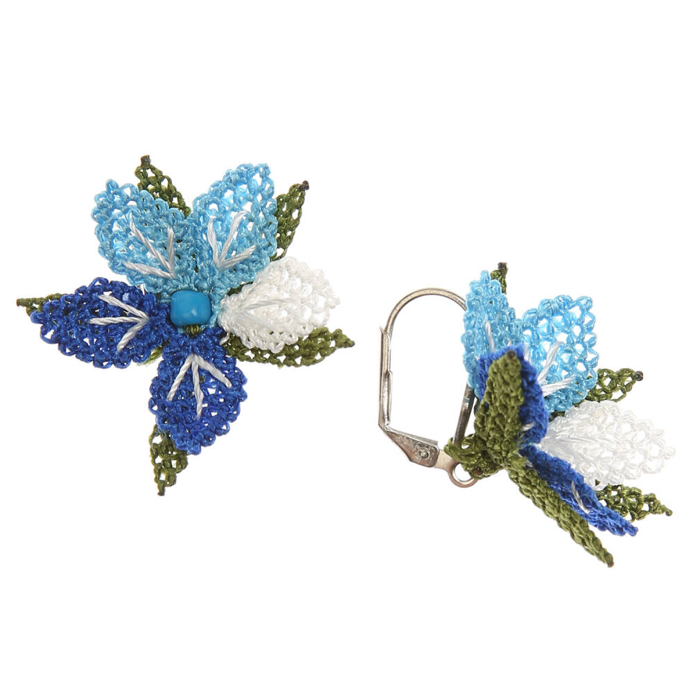 Mini Çiçek Küpe Elişi İğne Oyası Cm Lacivert Mavi takı aksesuar