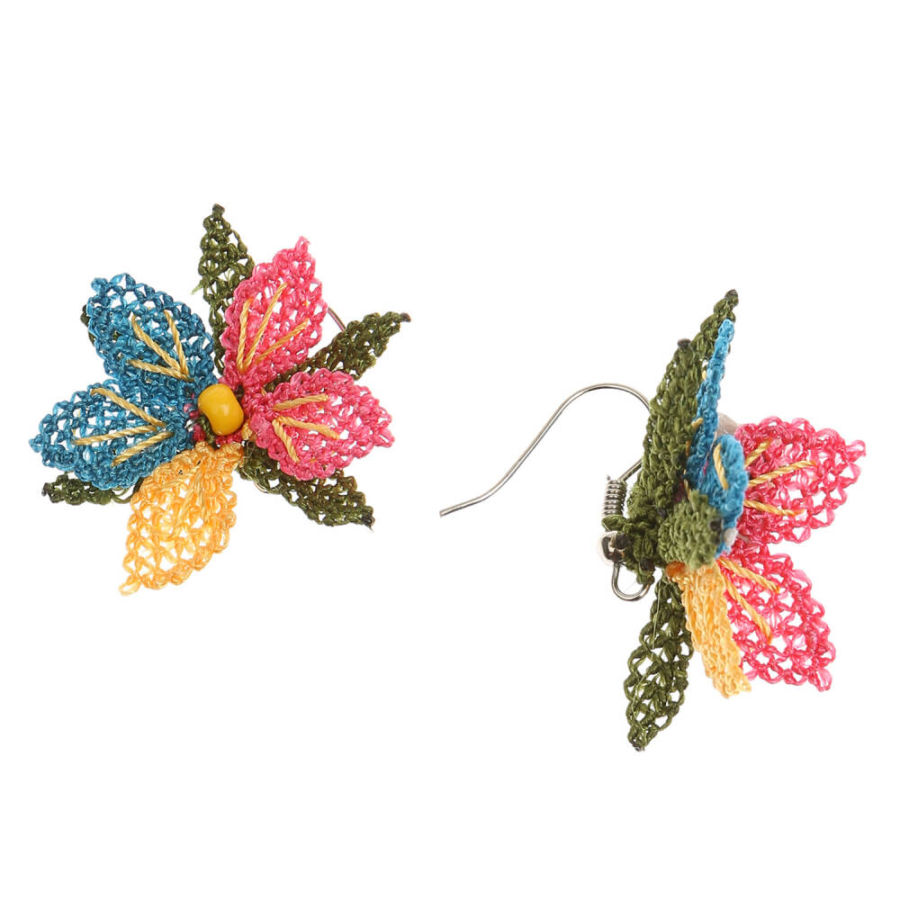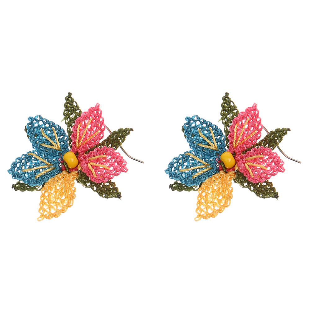 Mini Çiçek Küpe Elişi İğne Oyası Cm Mavi Pembe takı aksesuar