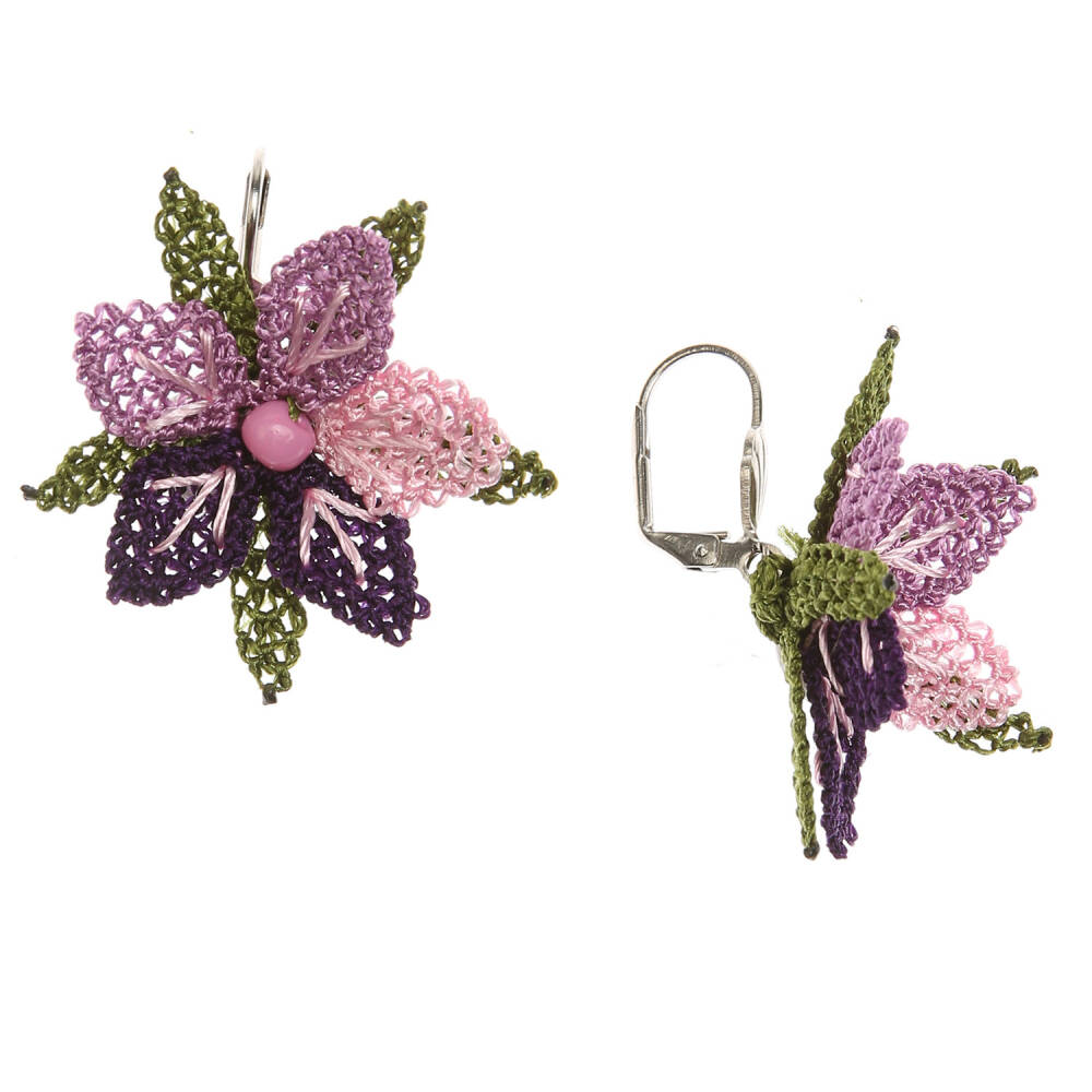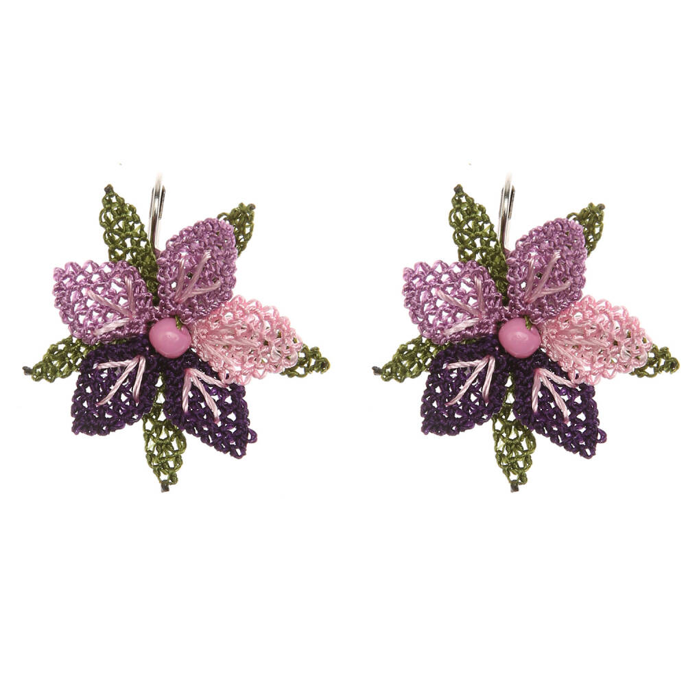Mini Çiçek Küpe Elişi İğne Oyası Cm Mor Lila takı aksesuar