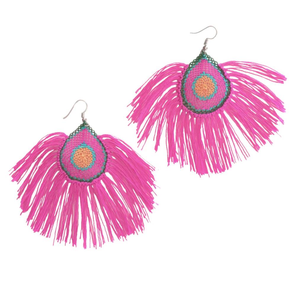 Tavus Tüy Model Küpe Elişi İğne Oyası 5 Cm Fuşya takı aksesuar