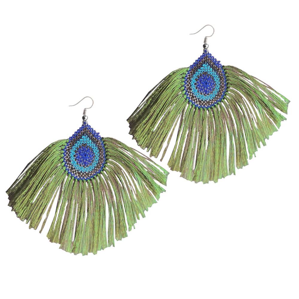 Tavus Tüy Model Küpe Elişi İğne Oyası 5 Cm Haki takı aksesuar