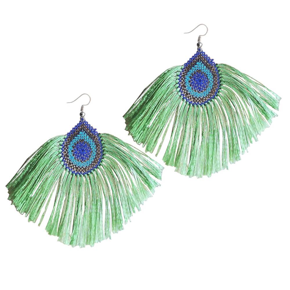 Tavus Tüy Model Küpe Elişi İğne Oyası 5 Cm Yeşil takı aksesuar