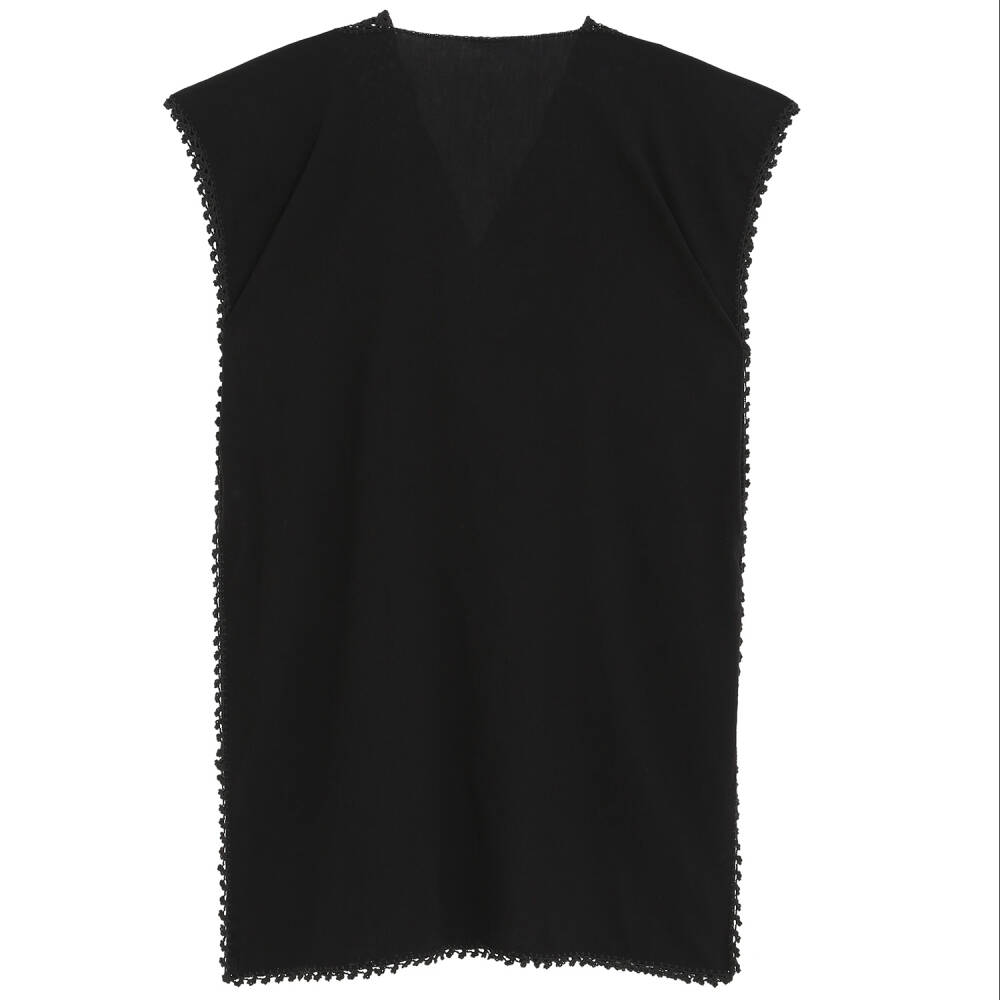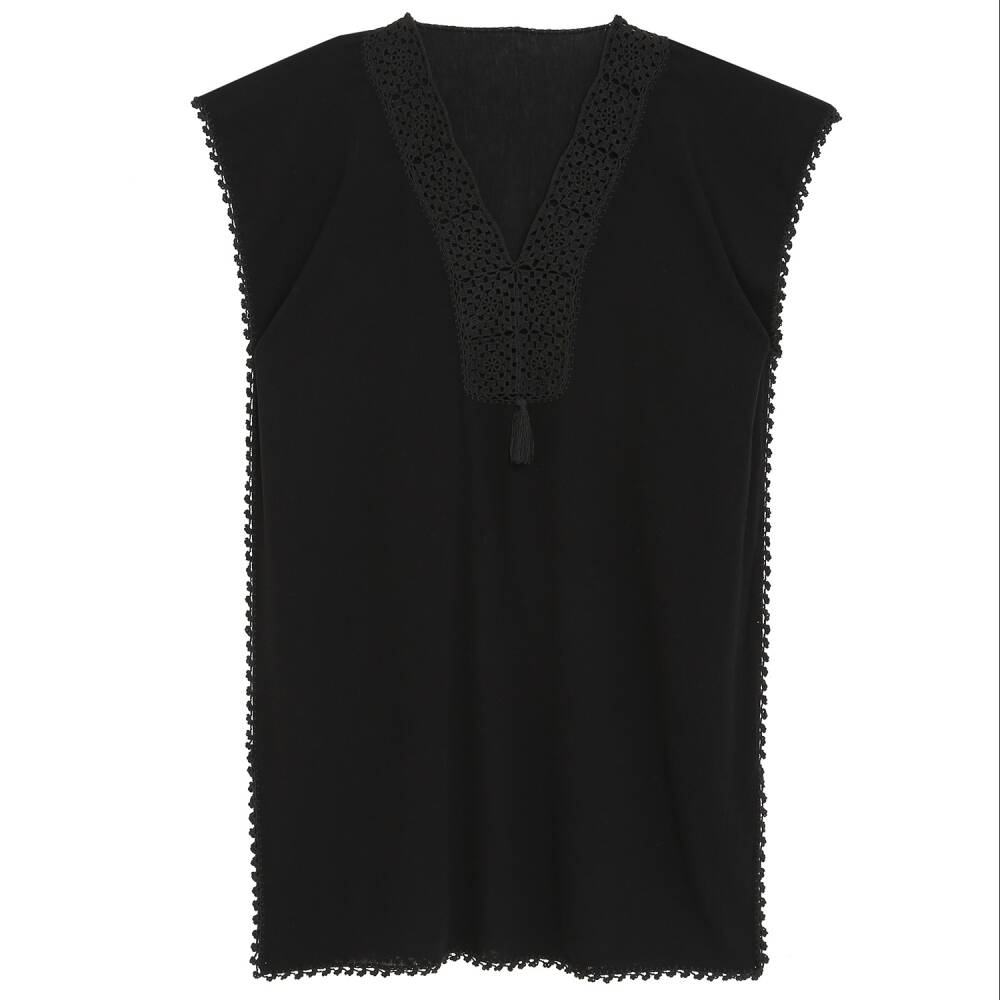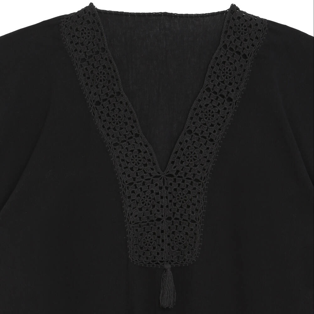 Yaka Ve Kenar İşlemeli Siyah Pareo Dantelli Pamuk Kumaş Püsküllü Stnd. Beden Siyah Kadın Tığ oyalı yaka ve kenarlar elişi işlemeli