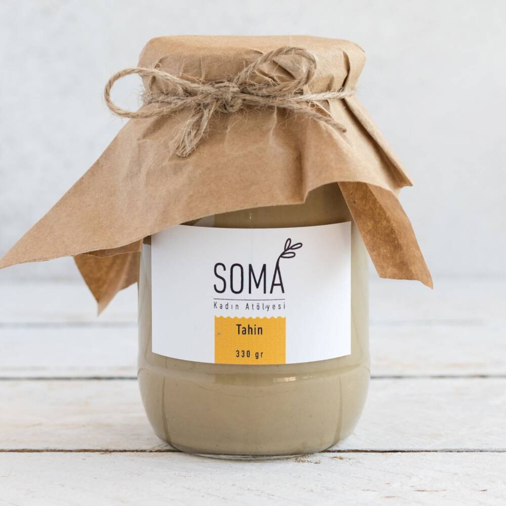 Bu ürün tamamen yerli susamlardan geleneksel yöntemlerle Soma Kadın Atölyesi adına Karcıoğlu Helva tarafından üretilmiştir. Tattığınız zaman vazgeçemeyeceğiniz, enfes susam kokusunu barındıran, kıvamına bayılacağınız, tamamen yerli susamlardan geleneksel yöntemlerle üretilen Soma’mızın eşsiz tahinini sizlere sunuyoruz.